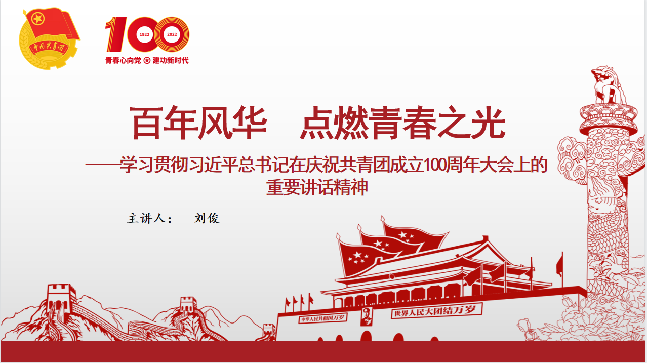 本次讲座由校团委书记刘俊主讲,他组织大家学习了习近平总书记在庆祝共青团成立100周年大会上的讲话,讲解了我校青年学生如何学习贯彻习近平总书记的重要讲话精神。