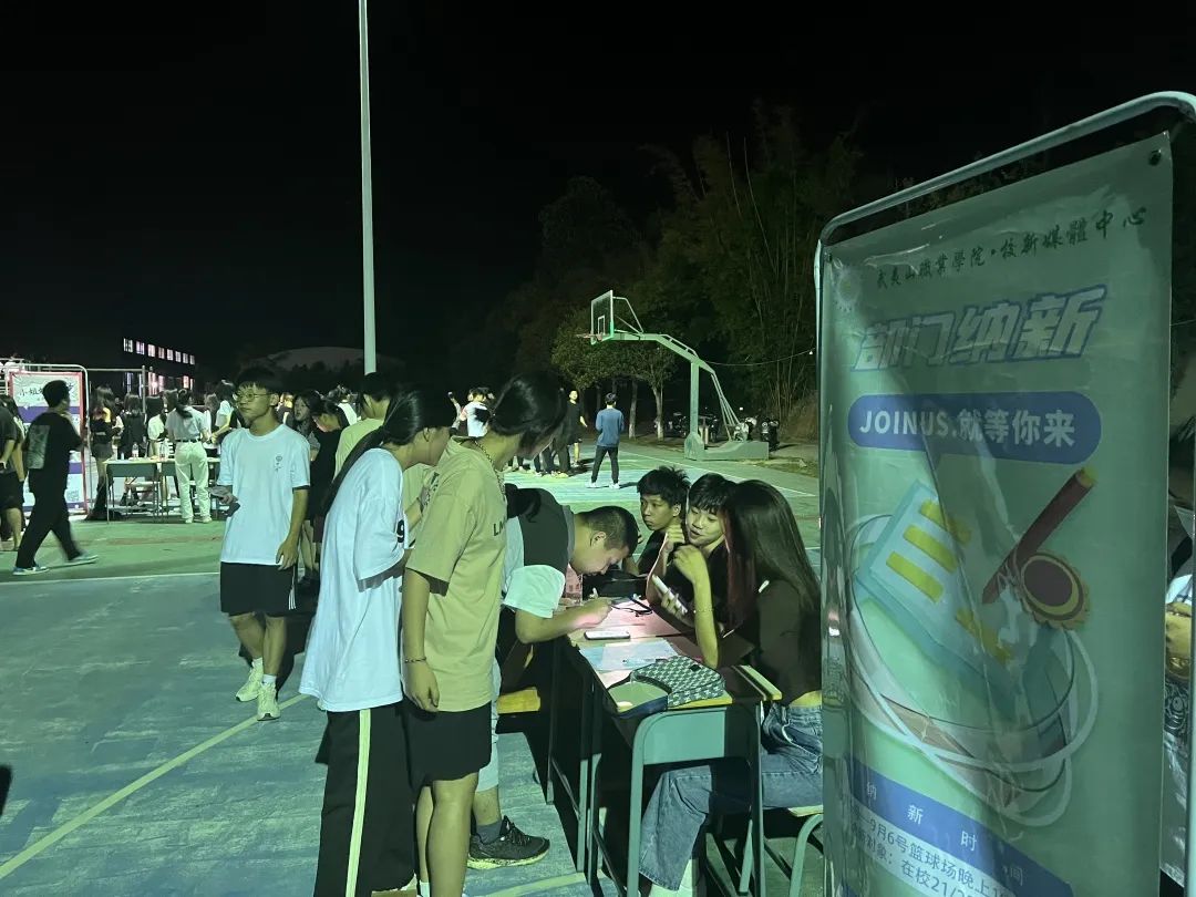 晚上7点,校新媒体中心、学生会、自律会、礼仪队等多个社团的负责人陆续进入指定位置,为即将进行的纳新工作做准备。
