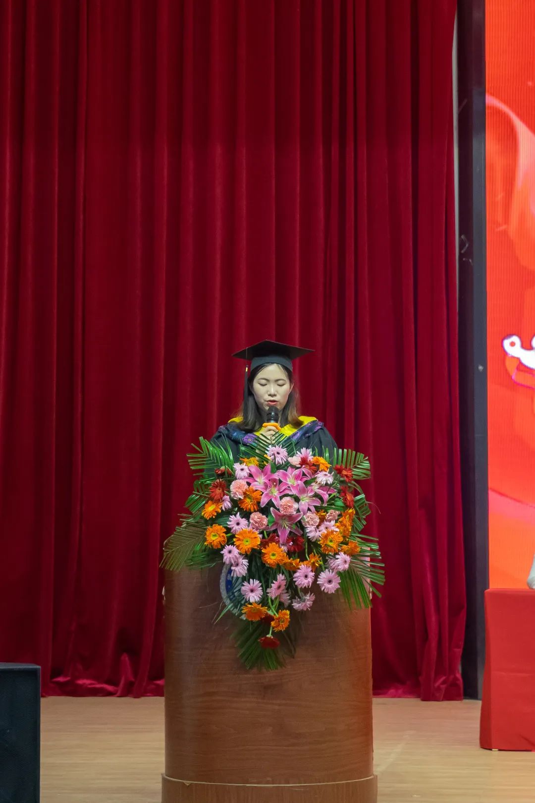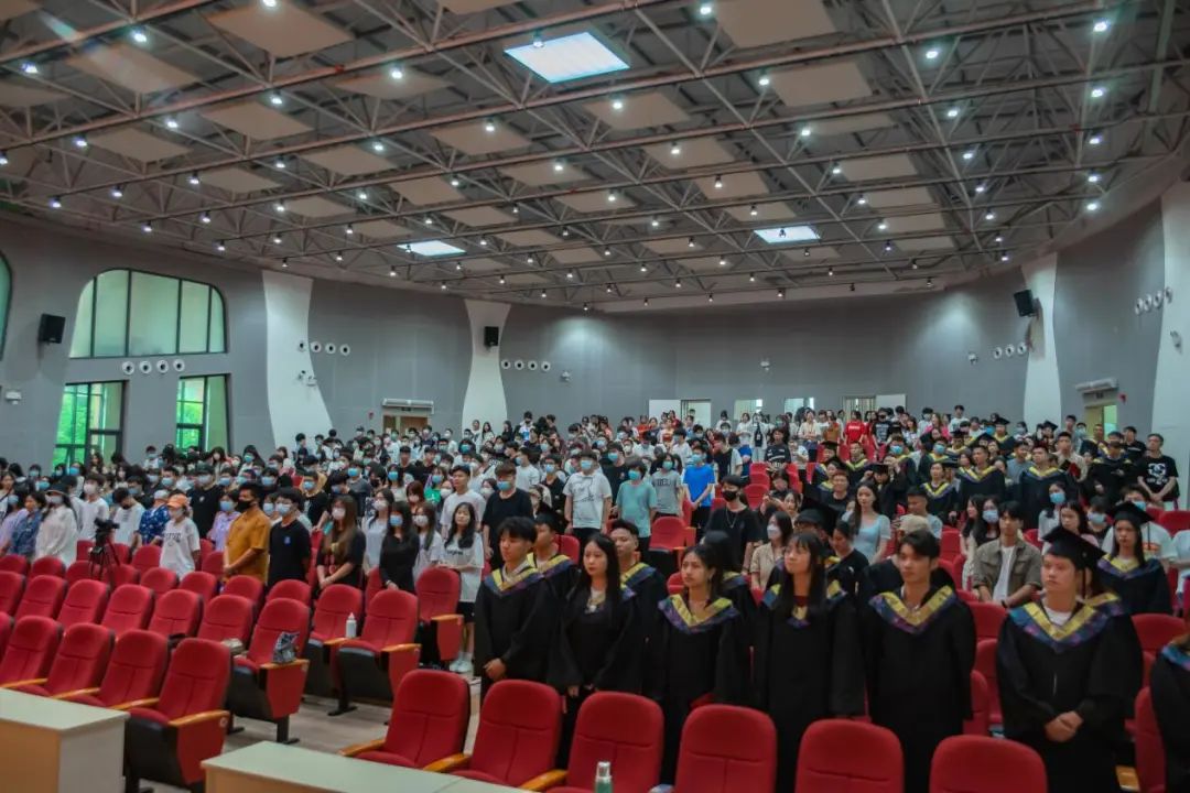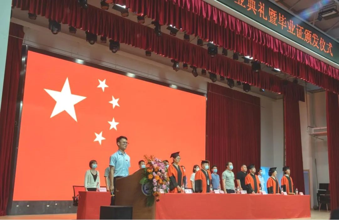 (毕业典礼在雄壮的国歌声中拉开序幕)