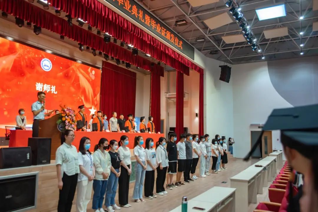 典礼的最后,全体毕业生向老师鞠躬行感恩礼,对老师们的一路教育呵护表示感谢。