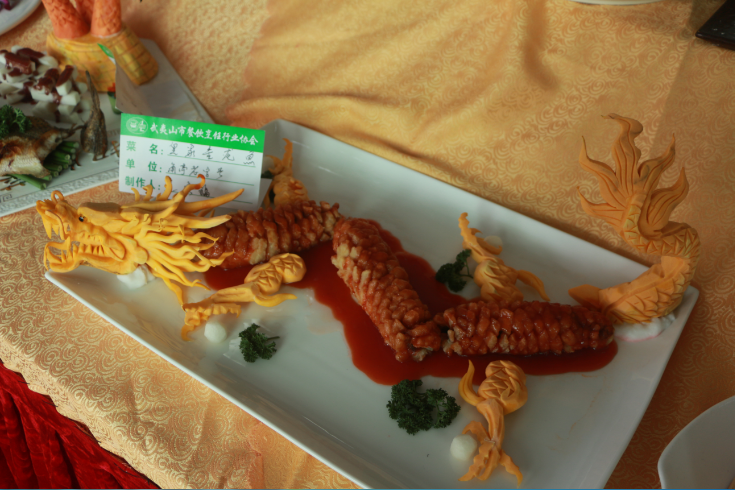 在比赛的菜品观摩中共展览出180余样作品,涌现出一大批色、香、味、型俱佳的精品菜肴,绝大部分作品本着继承创新、营养健康的制作理念,实现了继承传统和创新时尚的完美结合,既有传统的名菜,又有吸取各家特长的创新菜肴,许多作品甚至结合了武夷山当地特色,有的以茶入味、有的以食材雕刻出名山之境,实在叫人惊叹。